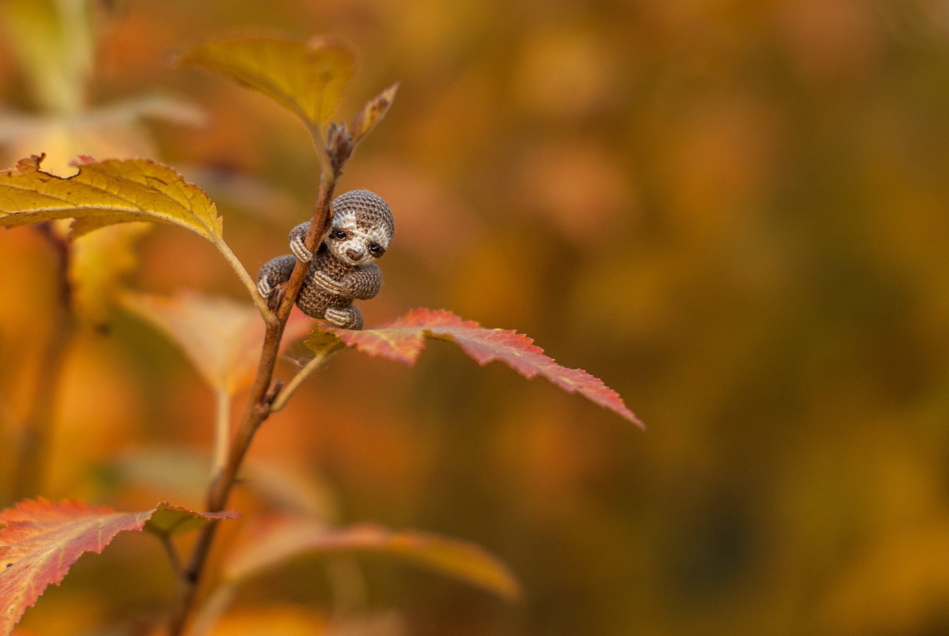This tiny crochet sloth knows the secret to life: take it slow, hang tight, and always look at the world upside down with soft eyes. Made entirely by hand and designed to hang from a twig or your finger, this sloth brings quiet joy and forest charm wherever he dangles.